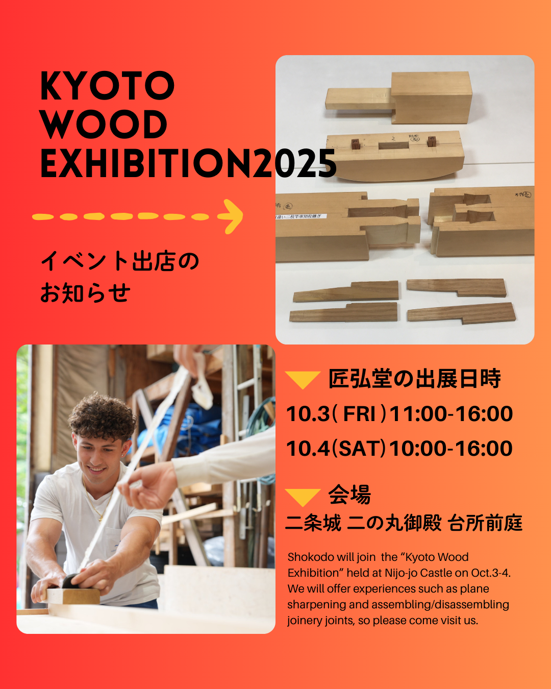 2025年10月3日(金)~6日(月)に二条城で開催される【KYOTO WOOD EXHIBITION 2025~木と森と暮らしをつなぐプロジェクト~】に匠弘堂がブース出展します!